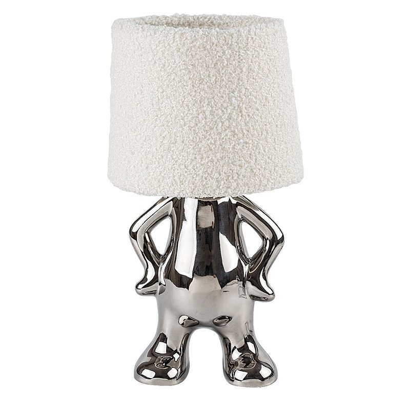 Rabalux Smurfy stona lampa preporučuje se onima koji vole kreativne lampe sa neobičnim dizajnom koje izmamjuju osmeh na lice u svakodnevnom životu. Ko se ne seća simpatičnih malih Štrumpfova? Iako ova vesela dizajnerska lampa nije plava, njeno telo je oblikovano poput Štrumpfa. Umesto tradicionalne dekorativne baze, stoji na štrumpfovskim nogama i ima kremasto obojen, pahuljasti tekstilni abažur umesto Štrumpfove glave. Svjetiljka je izrađena od keramike u hromiranoj boji. Ovaj „štrumpfasti“ model je savršen za dnevnu sobu ili spavaću sobu. Upravlja se kablovskim prekidačem i može se koristiti sa jednim izvorom svetlosti snage do 40 W. Tip grla je E14. U zavisnosti od vašeg ukusa, možete izabrati izvor svetlosti koji emituje toplo ili prirodno belo svetlo. Dizajnerska stona lampa se isporučuje bez izvora svetlosti.