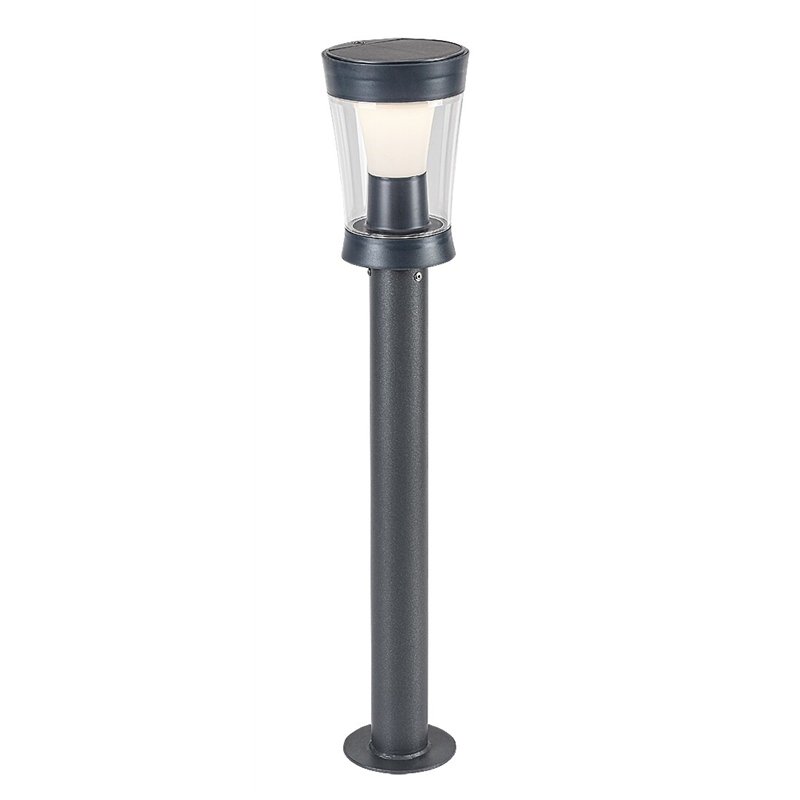 Moderno solarno spoljno svetlo za stajanje Angers prvenstveno se preporučuje za terasu ili baštu. Cilindrična lampa se širi prema gore i dopunjena je providnim abažurom. Poseduje svetlosni senzor koji prilagođava osvetljenost lampe u skladu sa okolnostima. Ovaj sivi model je u potpunosti napravljen od plastike i upotpunjen je ravnom, okruglom dekorativnom osnovom. Glava lampe je postavljena na cilindrično telo. Angers ima ugrađen LED izvor svetlosti snage 3 V, svetlosnog toka od 300 lumena sa senkom i 450 lumena bez senke i životnog veka od 15.000 sati. Izvor svetlosti ima temperaturu boje od 4000 K i shodno tome zrači prirodno belo svetlo. Baterija lampe ima napon od 3,7 V i kapacitet od 2.000 mAh. Dimenzije Anžera su sledeće: visina 630 mm, prečnik 120 mm, prečnik ugradnje 100 mm. Spoljna lampa ima IP65 zaštitu, odnosno potpuno je zaptivena i zaštićena od čvrstog materijala i prljavštine kao i od mlaza vode niskog pritiska. Njegov idealan opseg radne temperature je -10 °C do 40 °C.