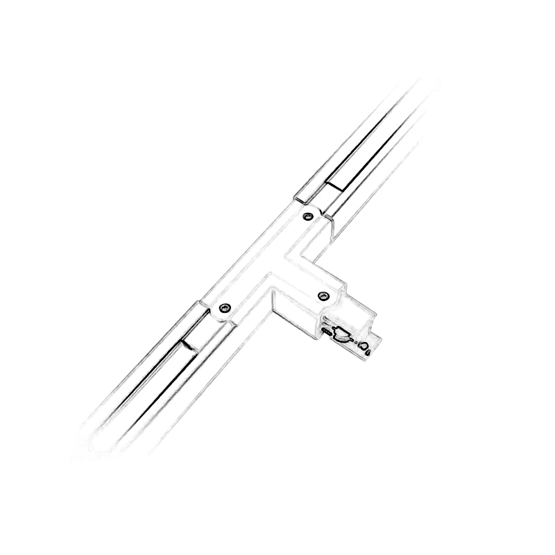 Šinski konektor za ugaono ( T ) nastavljanje-povezivanje šina. Jednostavno i lako postavljanje. Omogućava povezivanje šina u obliku slova T.