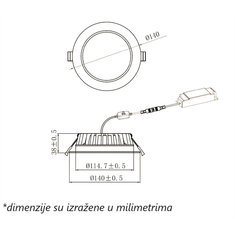 Radi neophodnog hladjenja svetiljku je potrebno ugraditi minimum 20 cm udaljenu od plafona.