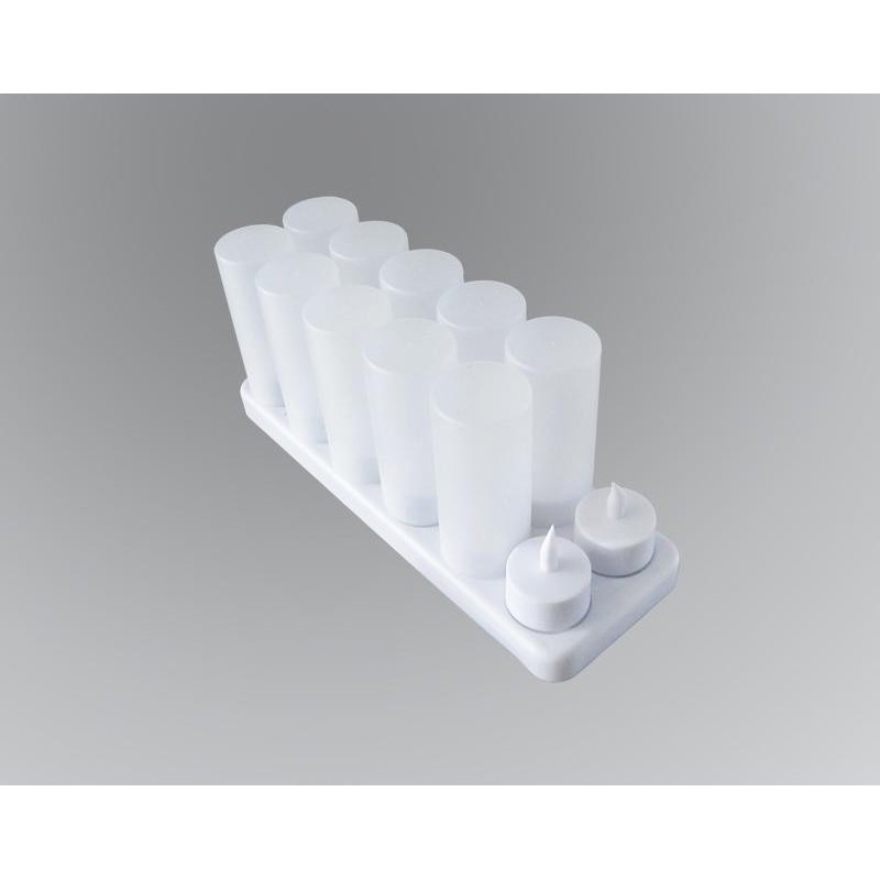 Komplet od 12 LED svećica za romantične trenutke. Komplet se sastoji od 12 pvc čaša, koje su predviđene da se u njih postave led sveće. Sveća se aktivira pomoću prekidača na dnu i ne poseduje baterije.