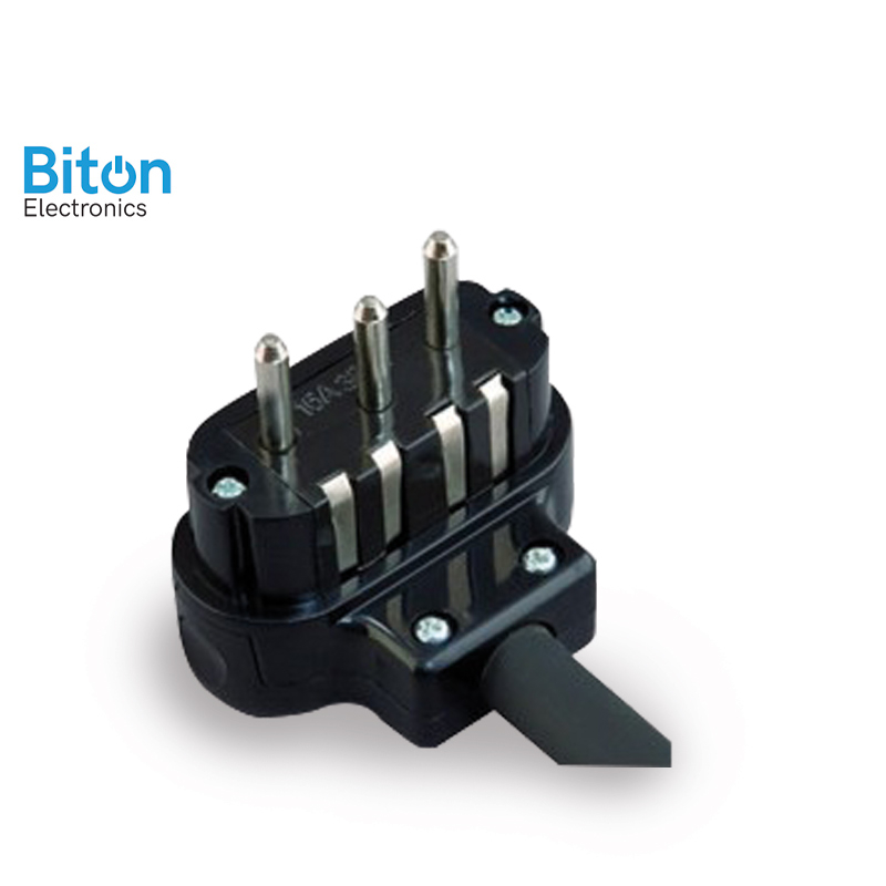 Trofazni utikač sa slobodnim krajem i kablom dužine 1,5 metara, crne boje.