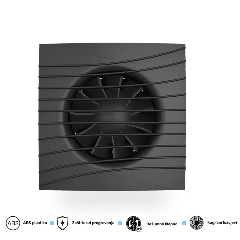 Ventilator SILENT 4C Matt Black za izduvnu ventilaciju kupatila, tuševa, kuhinja i drugih kućnih prostorija, prečnika 100mm.