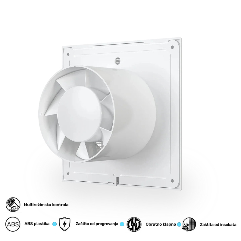 Ventilator ispunjava najstrože standarde kvaliteta i bezbednosti. Telo i prednji panel su napravljeni od izdržljive ABS plastike.