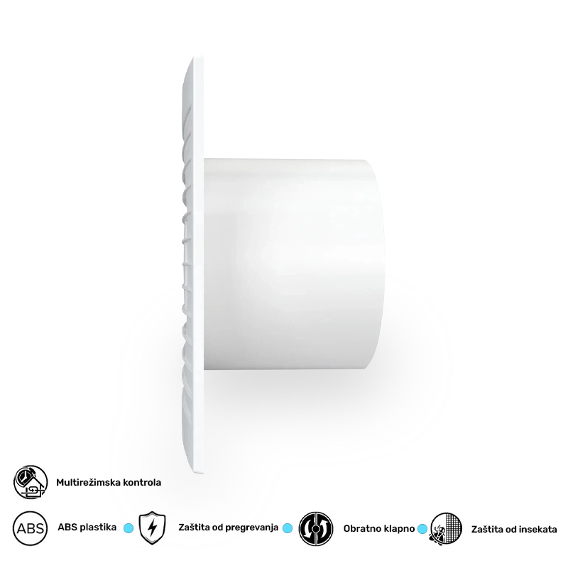 Ventilator za kontinuirano i periodično provetravanje kućnih prostorija sa mrežom protiv insekata, prečnika 125 mm.