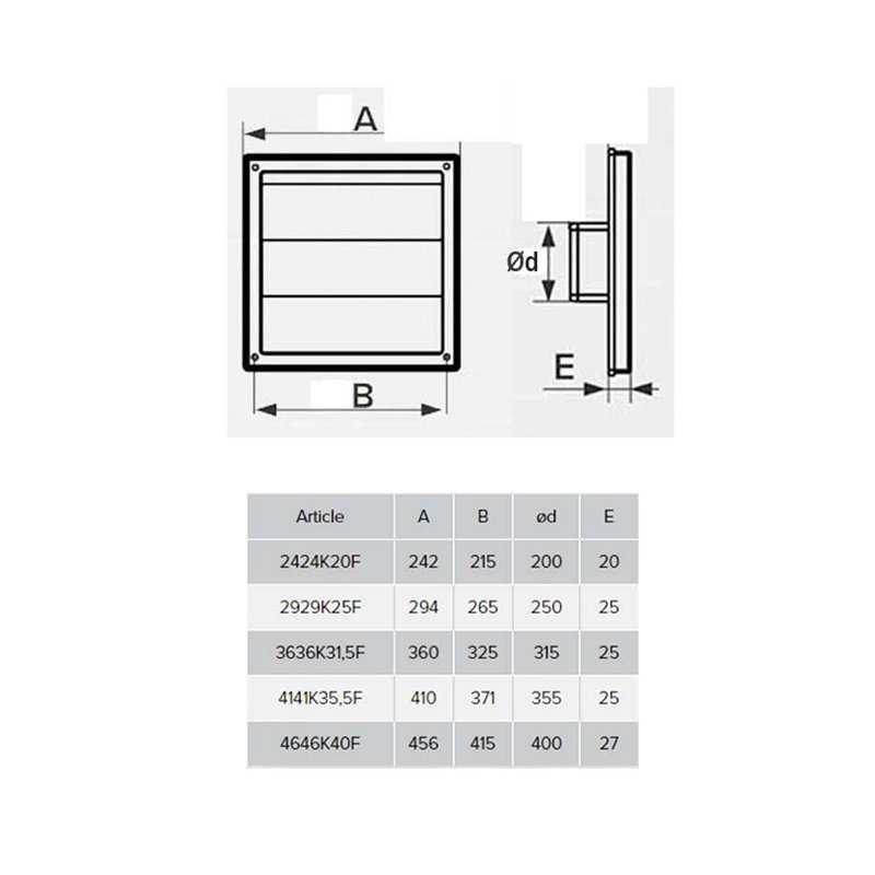 • Dekoracija dovodnih i odvodnih ventilacionih sistema stambenih,javnih i industrijskih zgrada. • Spoljašnja montaža na zid. • Opremljena sa gravitacionim resetkama za sprečavanje povratnog toka • Izrađena od kvalitetne i izdržljive ASA plastike • Pričvršćivanje vijcima. • Otporna na vremenske prilike ( -40 °C..... +90 °C,vlaznost 100%).