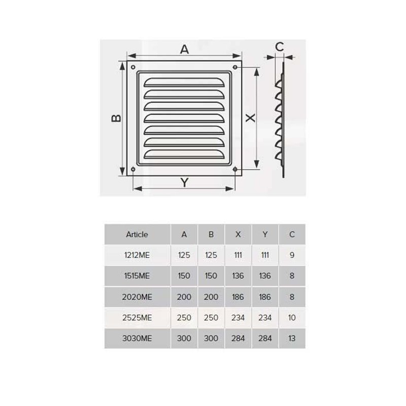 Dekoracija izduvnih otvora javnih, stambenih i industrijskih ventilacionih sistema. Za sisteme ventilacije,klimatizacije i grejanja.Zidna ili plafonska montaža. Izrađena od čelika presvucenog polimernim emajlom. Opremljena mrežom protiv komaraca. Fiksiranje se vrši pomoću vijaka