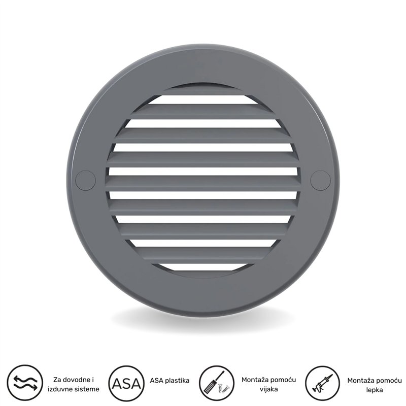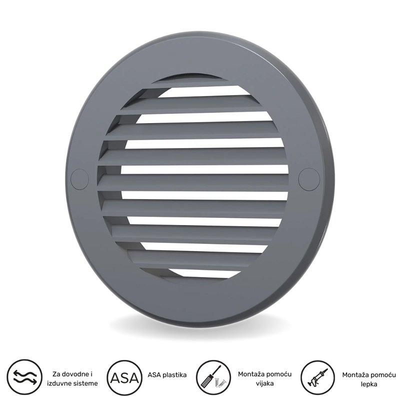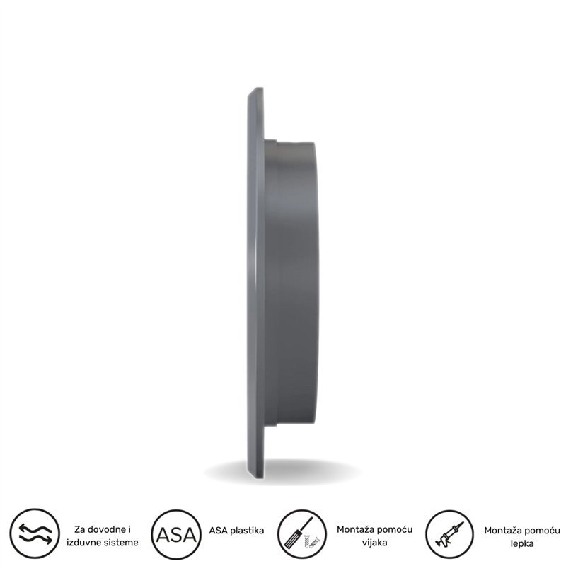 Žaluzina sive boje za plafonsku ili zidnu montažu, koja se koristi za sisteme dovodne i izduvne ventilacije, sisteme klimatizacije i grejanja vazduha.