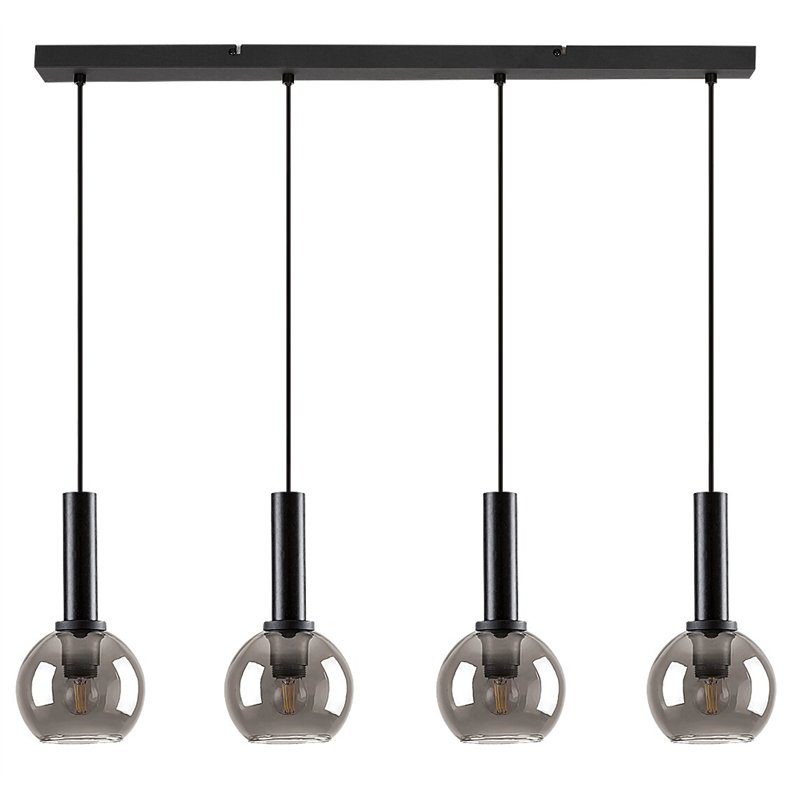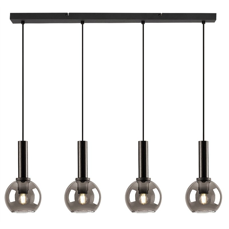 Sa svojim jednostavnim dizajnom bez premca, Centio privezak sa 4 sijalice može se dobro uklopiti u nameštaj skoro svake moderne dnevne sobe. Crnu metalnu lampu dopunjuju zatamnjeni sferni stakleni abažuri koji su otvoreni na dnu, tekstilni kablovi i duga crna dekorativna baza duguljastog oblika. Glave lampe vise jedna pored druge u nizu na istoj visini. Centio se može koristiti sa četiri izvora svetlosti, svaki sa snagom do 40W. Tip utičnice je E27. Kako se privezak prvenstveno preporučuje u dnevnoj sobi, predlažemo da ga koristite sa sijalicama koje zrače prirodno belo svetlo koje vam pomažu da postignete moderan, čist efekat. Pošto se izvori svetlosti dobro vide čak i kroz zatamnjene abažure, ovo viseće svetlo možete učiniti zanimljivijim pomoću sijalica nekonvencionalnog oblika. Dimenzije lampe su sledeće: širina 780 mm, prečnik 150 mm, rastojanje od plafona 1.200 mm. Centio privezak sa 4 sijalice se isporučuje bez izvora svetlosti.