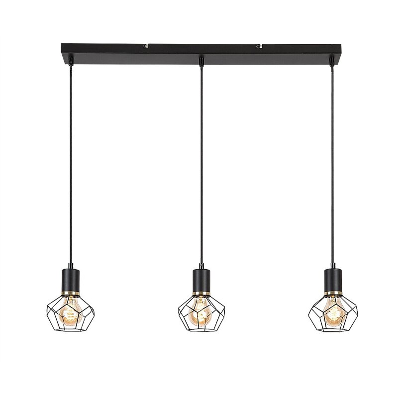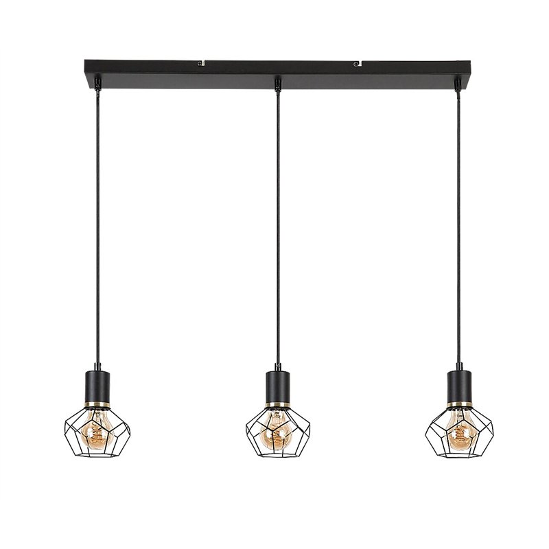 Vintage Fran privezak sa 3 sijalice prvenstveno se preporučuje u dnevnoj sobi, trpezariji ili spavaćoj sobi. Mat crna lampa koja je u potpunosti izrađena od metala dopunjena je rešetkastim abažurima koji podsećaju na oblik dijamanta. Svetlo se može pričvrstiti na plafon uz pomoć dugačke pravougaone dekorativne osnove. Glave lampe vise jedna pored druge u nizu na istoj visini. Pošto vam abažuri omogućavaju da u potpunosti vidite izvore svetlosti, za ovaj model je dobra ideja da izaberete estetske sijalice nekonvencionalnog oblika. Fran se može koristiti sa tri izvora svetlosti, svaki snage do 40 V. Tip utičnice je E27. U zavisnosti od vaših preferencija i prostorije u koju želite da ugradite lampu, možete odabrati izvore svetlosti koji emituju toplu ili prirodnu belu svetlost – prvi se preporučuje u spavaćoj sobi, dok drugi najbolje pristaje u dnevnoj sobi. Dimenzije priveska Fran od 3 sijalice su sledeće: širina 700 mm, rastojanje od plafona 1.200 mm, prečnik svakog abažura 200 mm. Ovaj model se isporučuje bez izvora svetlosti.
