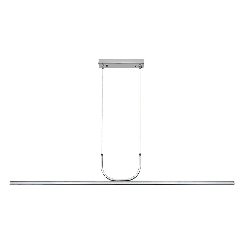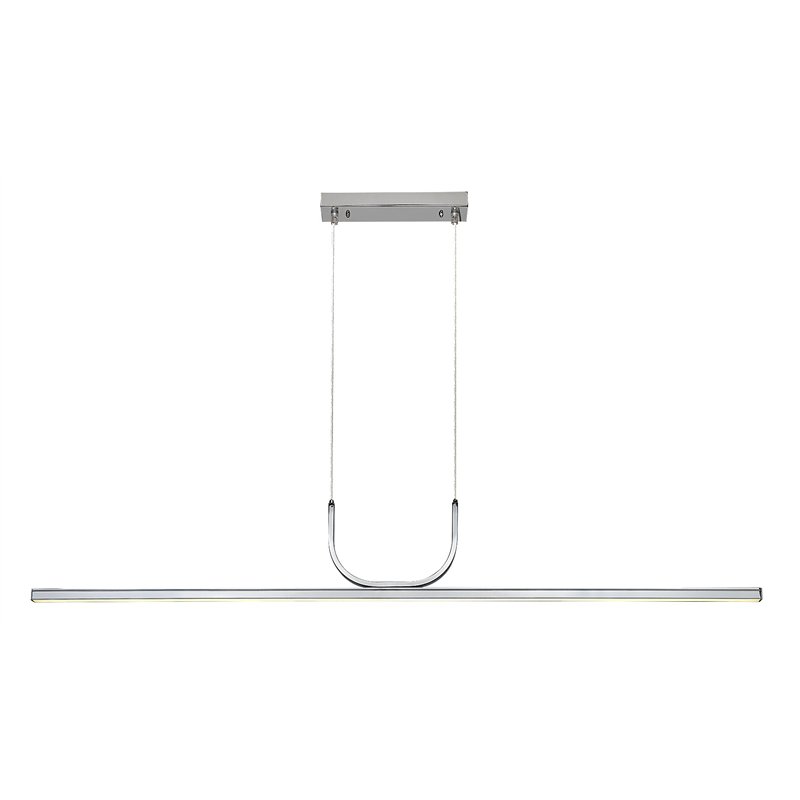 Sa svojim jednostavnim, čistim dizajnom i sjajnom metalnom površinom, Elia privezak može biti odličan izbor u skoro svakoj modernoj kuhinji. Zahvaljujući svojim dimenzijama, Elia hromirane boje efikasno osvetljava kuhinjski pult ili komoda, pružajući efikasnu pomoć pri pripremanju, kuvanju i serviranju jela. Duga kvadratna šipka aluminijumske lampe je povezana sa dekorativnom postoljem preko dva spojna kabla koja su lučno zakrivljena ispod. Viseća lampa se može pričvrstiti na plafon uz pomoć duguljaste dekorativne osnove. Elia je dopunjena belim akrilnim abažurom. Lampa ima ugrađeni LED izvor svetlosti energetske klase G snage 25W, svetlosnog fluksa od 1.150 lumena sa senkom i 2.000 lumena bez senke, i izvanrednim životnim vekom od 36.000 sati! Sa temperaturom boje od 3000 K, sijalica emituje toplu belu svetlost i stvara prijatnu atmosferu u kuhinji. Dimenzije kuhinjskog privezka su sledeće: širina 1.200 mm, rastojanje od plafona 1.300 mm, dubina ugradnje 250 mm.