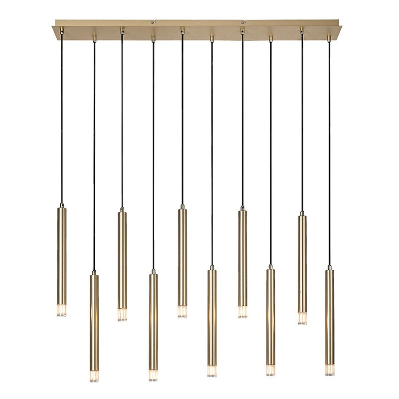 Rabalux Ramira 10-sijalica viseća lampa se prvenstveno preporučuje onima koji traže viseću lampu minimalističkog stila, ali sa impresivnim dimenzijama i svetlosnim intenzitetom. Lampa je izrađena od metala u elegantnoj zlatnoj boji i dopunjena je prozirnim akrilnim senkama i dugim kvadratnim dekorativnim postoljem u istoj boji kao glave lampe. Lampe malog prečnika su izrađene u tubularnom, cilindričnom obliku i postavljene su u red, jedna pored druge. Glave lampe vise na različitim visinama, što ovom modelu daje jedinstven izgled. Viseća lampa je idealna ne samo za dnevnu sobu, već i za kuhinju, trpezariju ili spavaću sobu. Može se koristiti sa deset sijalica, svaka snage do 5 W. Tip grla je G9. Lampa se isporučuje bez izvora svetlosti.
