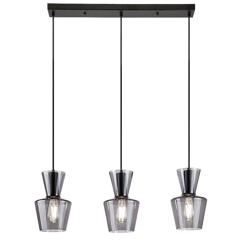 Sa svojim suzdržanim bojama i kreativnim dizajnom, Abra privezak sa 3 sijalice može biti moderan komad nameštaja mnogih modernih dnevnih soba. Mat crna metalna lampa upotpunjena je zatamnjenim staklenim abažurima koji se sužavaju prema dole i otvoreni su na dnu, dok su glave lampe koje su postavljene jedna pored druge u nizu pričvršćene za dugačku, duguljastu, crnu dekorativnu osnovu preko tekstilnih kablova. Manji deo svakog abažura koji se širi nagore – i što ovaj model u isto vreme čini posebnim – okružuje gornji deo glava lampe kao kragna. Abra može da se koristi sa tri sijalice, svaka snage do 60W. Tip grla je E27. Kako se privezak prvenstveno preporučuje u dnevnoj sobi, predlažemo da ga koristite sa sijalicom koja zrači prirodno belo svetlo, što vam pomaže da postignete moderan, čist efekat. Svetiljka ima sledeće dimenzije: širina 600 mm, visina svakog abažura 250 mm, prečnik svakog abažura 150 mm, rastojanje lampe od plafona 1.700 mm. Abra privezak sa 3 sijalice se isporučuje bez izvora svetlosti.