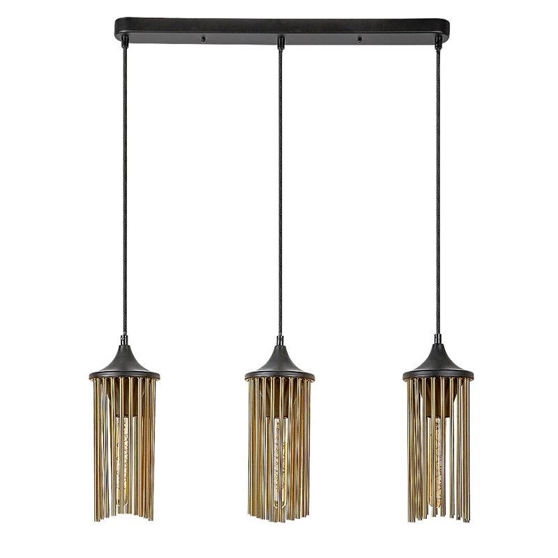 Moderni Rokas privezak sa 3 sijalice je Rabaluk-ov model koji je sam dizajnirao. Svojim osebujnim dizajnom i toplim nijansama može biti elegantan i šarmantan komad nameštaja dnevne sobe. Mat crni model koji je u potpunosti napravljen od metala ima jedinstven izgled koji je posledica dugih, tankih bakarnih šipki koje čine abažure. Oni okružuju svaku sijalicu poput zavese. Ovo svetlo se može pričvrstiti na plafon uz pomoć tekstilnih kablova i izdužene, mat crne ukrasne osnove sa zaobljenim krajem. Glave lampe vise jedna pored druge u nizu na istoj visini. Pošto se izvori svetlosti mogu u potpunosti videti kroz abažure, dobro je koristiti ovaj model sa estetskim sijalicama nekonvencionalnog oblika. Rokas može da radi sa tri izvora svetlosti, svaki sa snagom do 40W. Tip utičnice je E27. Privezak sa 3 sijalice ima sledeće dimenzije: širina 580 mm, prečnik 120 mm, rastojanje od plafona 1.400 mm. Ovaj model se isporučuje bez izvora svetlosti.