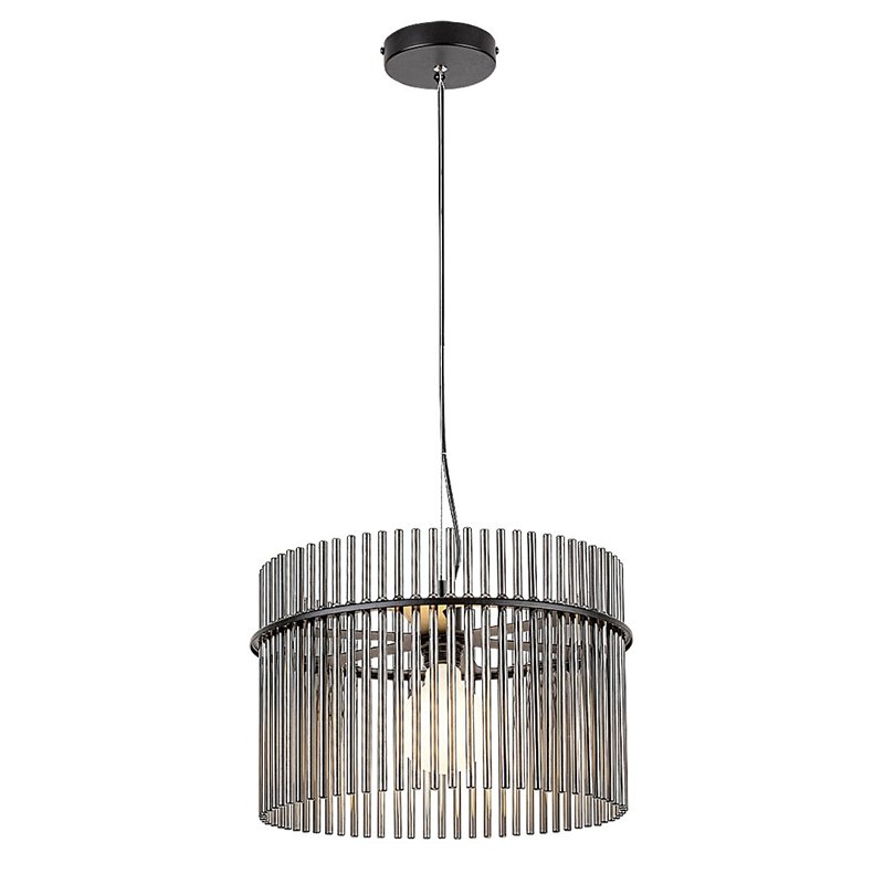 Moderan Inesa privezak je elegantan izbor za dnevnu sobu, trpezariju ili spavaću sobu. Mat crna metalna lampa upotpunjena je zatamnjenim staklenim abažurom, a može se pričvrstiti na plafon uz pomoć male, okrugle ukrasne osnove. Tanki cilindrični elementi koji čine abažur podsećaju na sitne cevi organa i okružuju izvor svetlosti poput zavese. Inesa se može koristiti sa jednom sijalicom snage do 40 V. Tip grla je E27. Pošto se izvor svetlosti može u potpunosti videti kroz abažur, dobro je koristiti ovaj model sa estetskom sijalicom nekonvencionalnog oblika. Ako ga instalirate u spavaćoj sobi, preporučuje se da ga koristite sa sijalicom koja emituje toplo belo svetlo. Ova vrsta svetla opušta vaše oči, idealna je za odmor i opuštanje i pomaže vam da stvorite ugodnu, intimnu atmosferu. Dimenzije visećeg svetla Inesa su sledeće: prečnik 400 mm, visina abažura 260 mm, rastojanje lampe od plafona može se podesiti između 1.000-1.500 mm, prečnik ugradnje je 120 mm. Ovaj model se isporučuje bez izvora svetlosti.