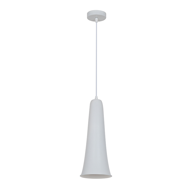 Visilica sa bazom i napojnim kablom u beloj boji. Abažur od aluminijuma je sa spoljne i unutrašnje strane takođe bele boje. Poseduje jedno sijalično grlo tip E27. Visina kabla se može jednostavno podešavati. Odlična za pultove, šankove i trpezarijske stolove.