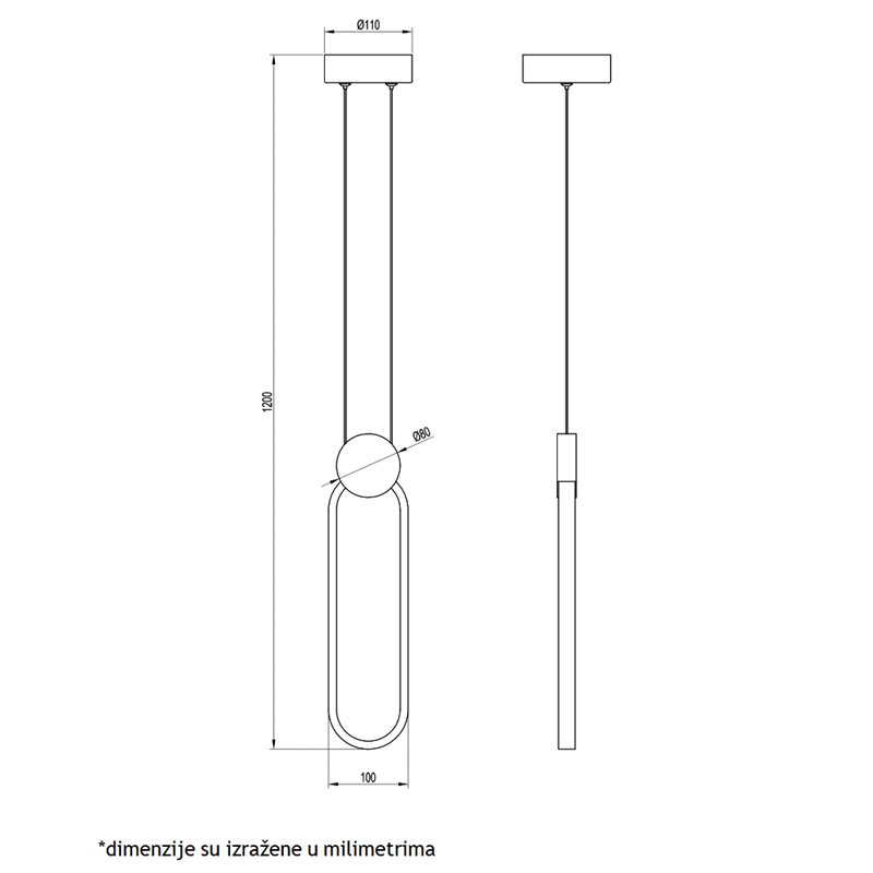 - Širina - 100, Visina- 1200 mm (sa kablom)