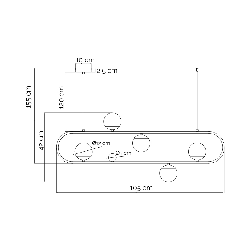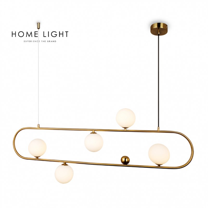Visilica modernog i originalnog dizajna u boji mesinga, sa 5 kugli u boji opal/mat. Svaka kugla sadrži sijalično grlo za tip sijalice G9. Kugle dimenzija Ø12, raspoređene su u različitim smerovima, ne samo zbog efektnog načina rasvete, već i sa ciljem da istaknu jedinstven izgled ove visilice.
