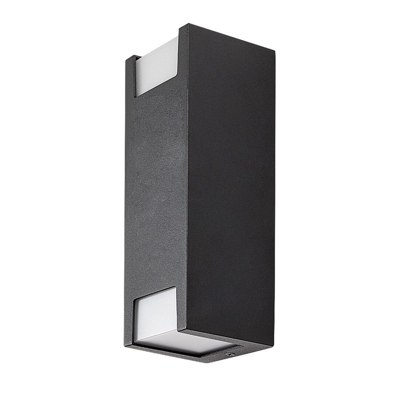 Moderna spoljna zidna lampa Cernon se prvenstveno preporučuje za terasu ili spoljašnji zid kuće. Ovaj crni model minimalističkog stila sigurno će vam se dopasti ako tražite lampu koja se fokusira na funkcionalnost i skoro neprimetno se uklapa u okruženje. Materijal izduženog, kockastog Cernona je aluminijum, dok su beli abažuri raspoređeni kao prozori na donjem i gornjem delu tela od plastike. Ova zidna lampa se može koristiti sa dve sijalice, svaka snage do 7 V. Tip grla je GU10. Dimenzije ovog spoljnog svetla su sledeće: širina 75 mm, visina 210 mm, rastojanje od zida 80 mm. Lampa ima IP44 zaštitu koja osigurava da je zaštićena od prodora čvrstih čestica prečnika od 1 mm ili više i od prskanja vode iz bilo kog pravca. Ovaj model se isporučuje bez izvora svetlosti.
