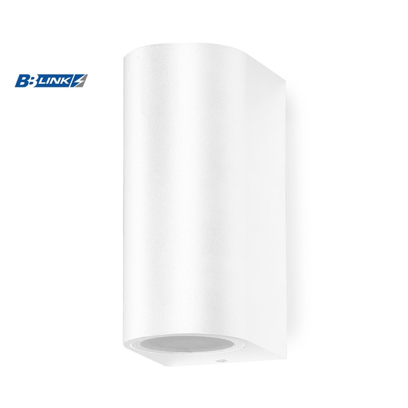 Zidna svetiljka bele boje, modernog i atraktivnog izgleda za spoljašnju upotrebu, u IP44 zaštiti. Svetlost emituje u dva smera (gore i dole) iz 2 sijalična grla, tip GU10.