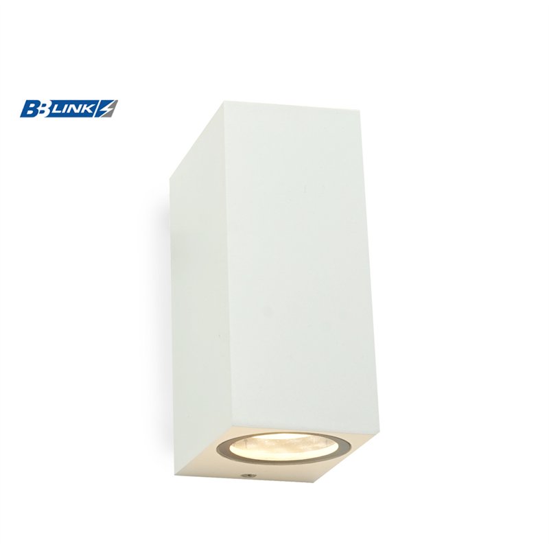 Zidna spoljna svetiljka bele boje u IP44 zaštiti. Poseduje 2 sijalična grla, tip GU10. Elegantnog dizajna, izrađena je u obliku kvadra, od aluminijuma sa odličnom završnom obradom. Idealna je za postavljanje na fasade stambenih i industrijskih objekata, na terasama i u dvorištima.
