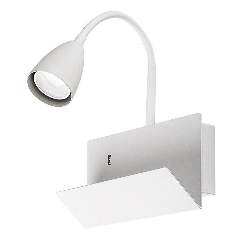 Moderna, podesiva Tacito zidna lampa je praktičan izbor za dnevnu ili spavaću sobu. Bela metalna lampa je dopunjena cilindričnom glavom svetiljke koja se širi nadole i belim plastičnim abažurom, a može se pričvrstiti na zid uz pomoć velikog ukrasnog postolja duguljastog oblika. Lampa za čitanje ima fleksibilnu ruku, tako da možete usmeriti Tacito svetlo prema vašim potrebama. Ovaj praktični model takođe ima USB port, pa vam pomaže da punite svoj mobilni na udoban način, čak i na dohvat ruke od vašeg kreveta. Telefon možete staviti na sef koji je pričvršćen za dekorativnu podlogu, tako da ne morate da brinete da li će vam skliznuti ili pasti sa visine. Ova zidna lampa se može koristiti sa jednom sijalicom snage do 25 V. Tip utičnice je GU10. U zavisnosti od vaših preferencija, možete odabrati izvor svetlosti koji zrači toplom ili prirodnom belom svetlošću. Dimenzije Tacita su sledeće: visina 290 mm, širina 230 mm, prečnik abažura 60 mm, rastojanje lampe od zida 190 mm. Ovaj model se isporučuje bez izvora svetlosti.