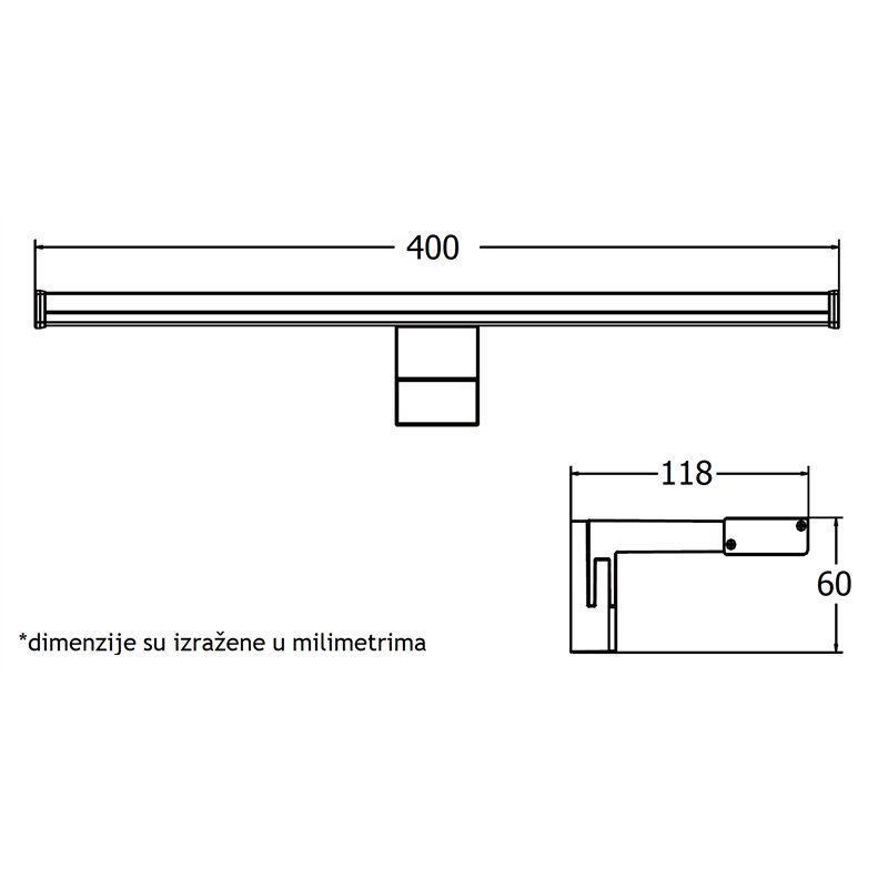- 400 x 118 x 60 mm